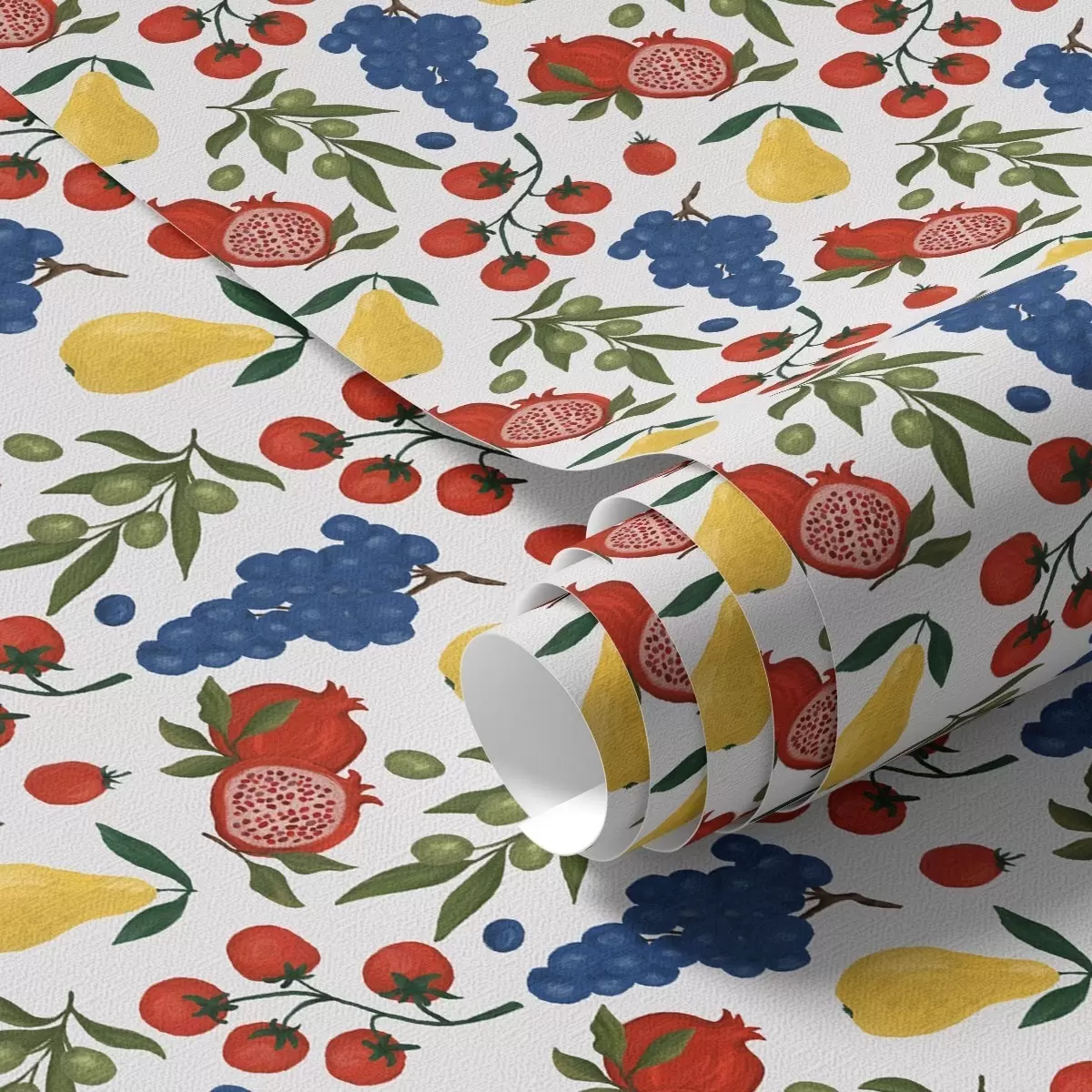 Papel de parede Frutas suculentas: romãs, uvas, peras sobre fundo branco Nr. a00801