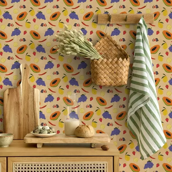 Papel de parede Mamão, frutas cítricas e bagas sobre um fundo rico e quente Nr. a00803v1