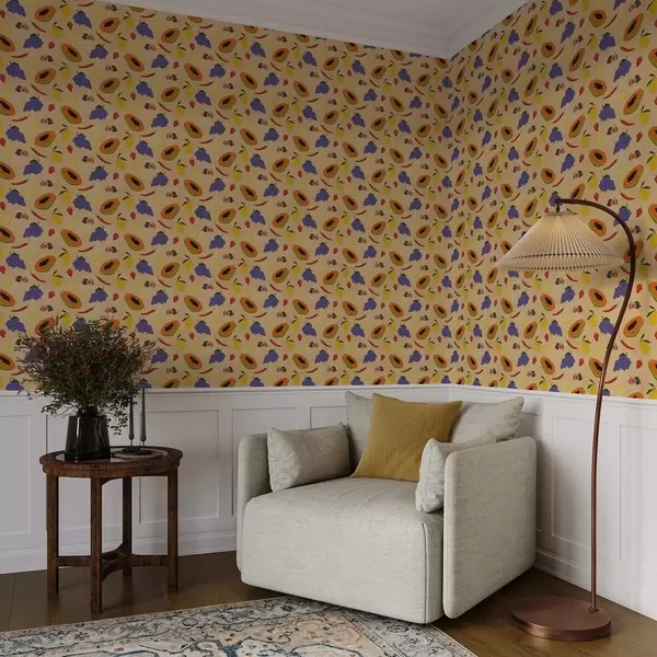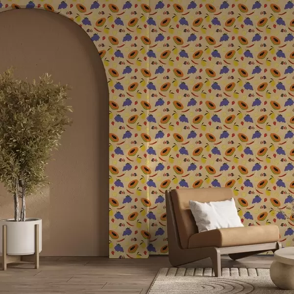 Papel de parede Mamão, frutas cítricas e bagas sobre um fundo rico e quente Nr. a00803v1