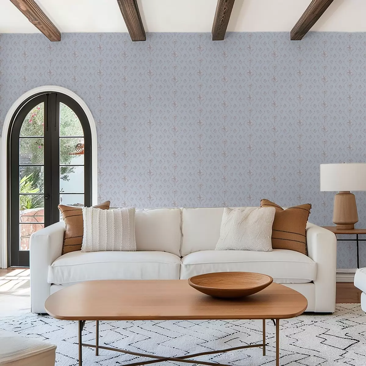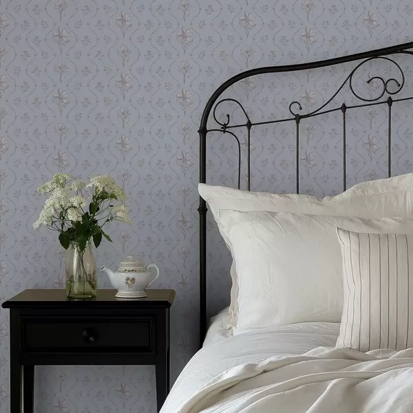 Papel de parede Pequenas flores e fitas em tons de azul claro Nr. a00808v1