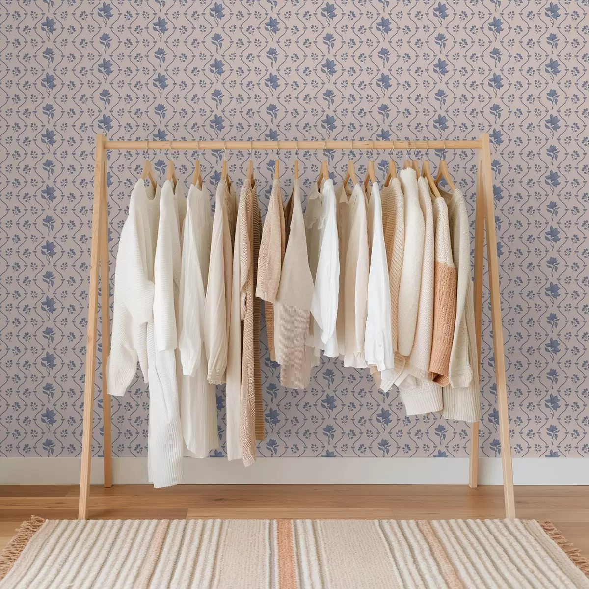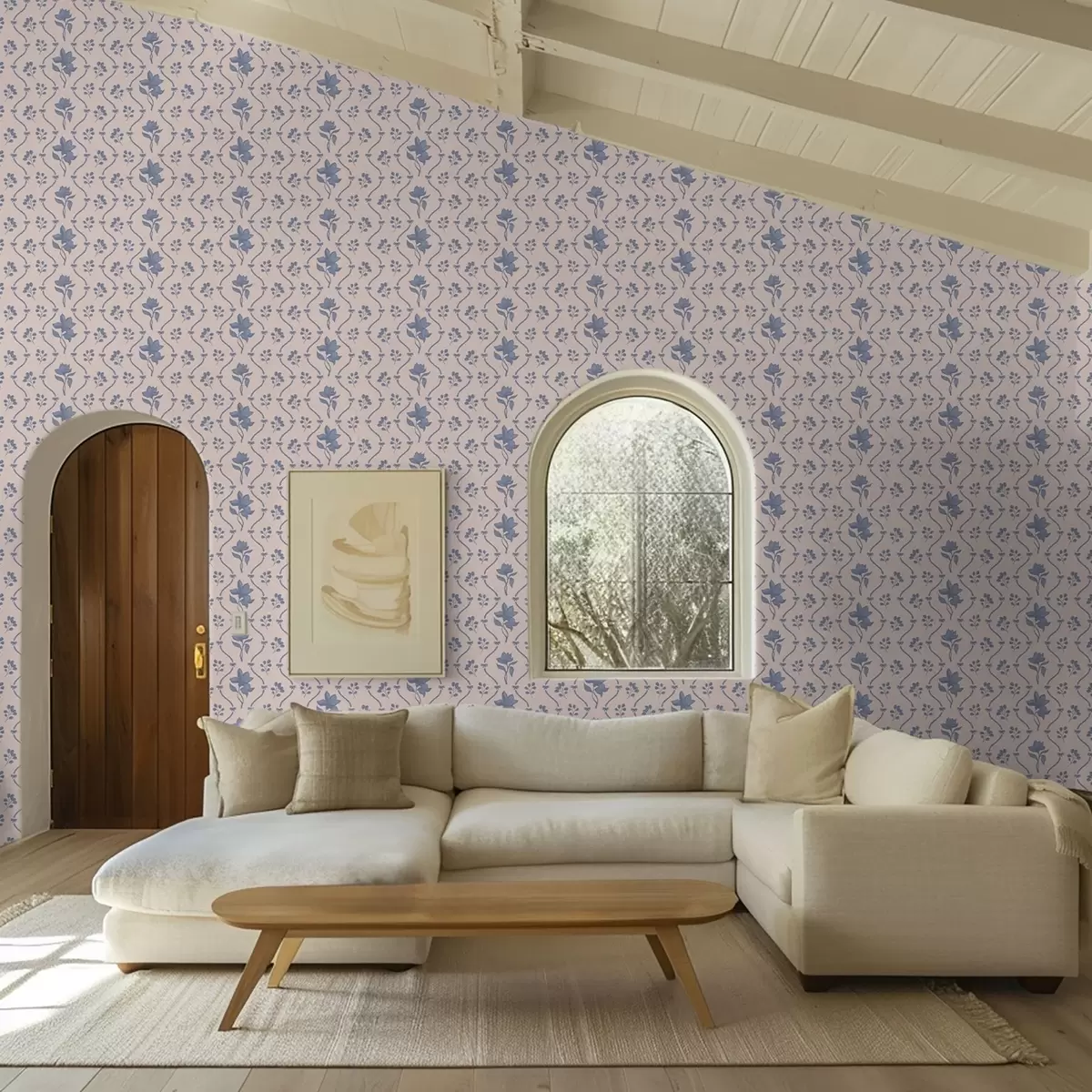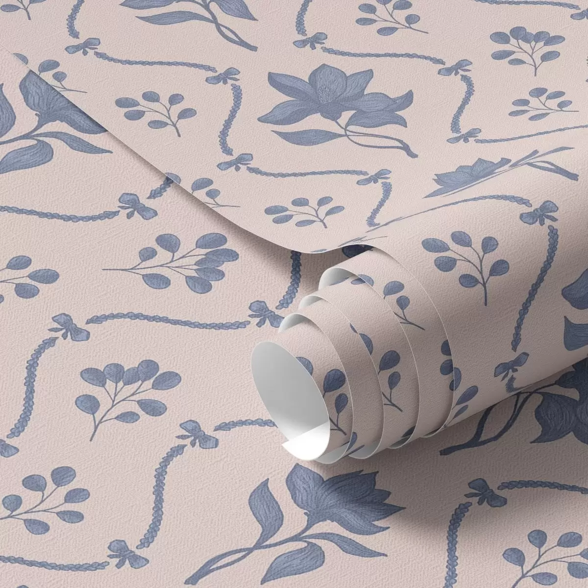 Papel de parede Pequenas flores e fitas em tons de azul e rosa Nr. a00808v3