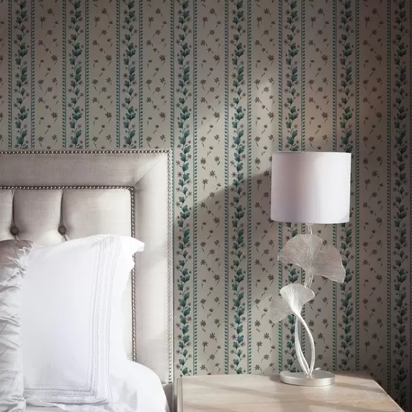 Papel de parede Listras florais verticais em tons de azul e castanho Nr. a00811v1