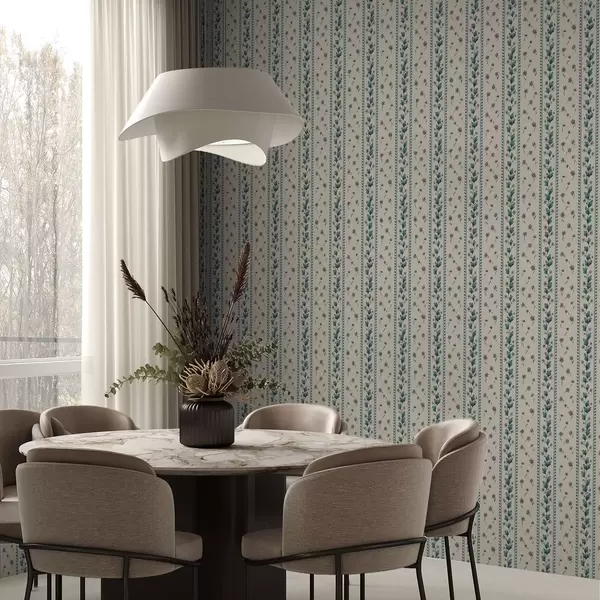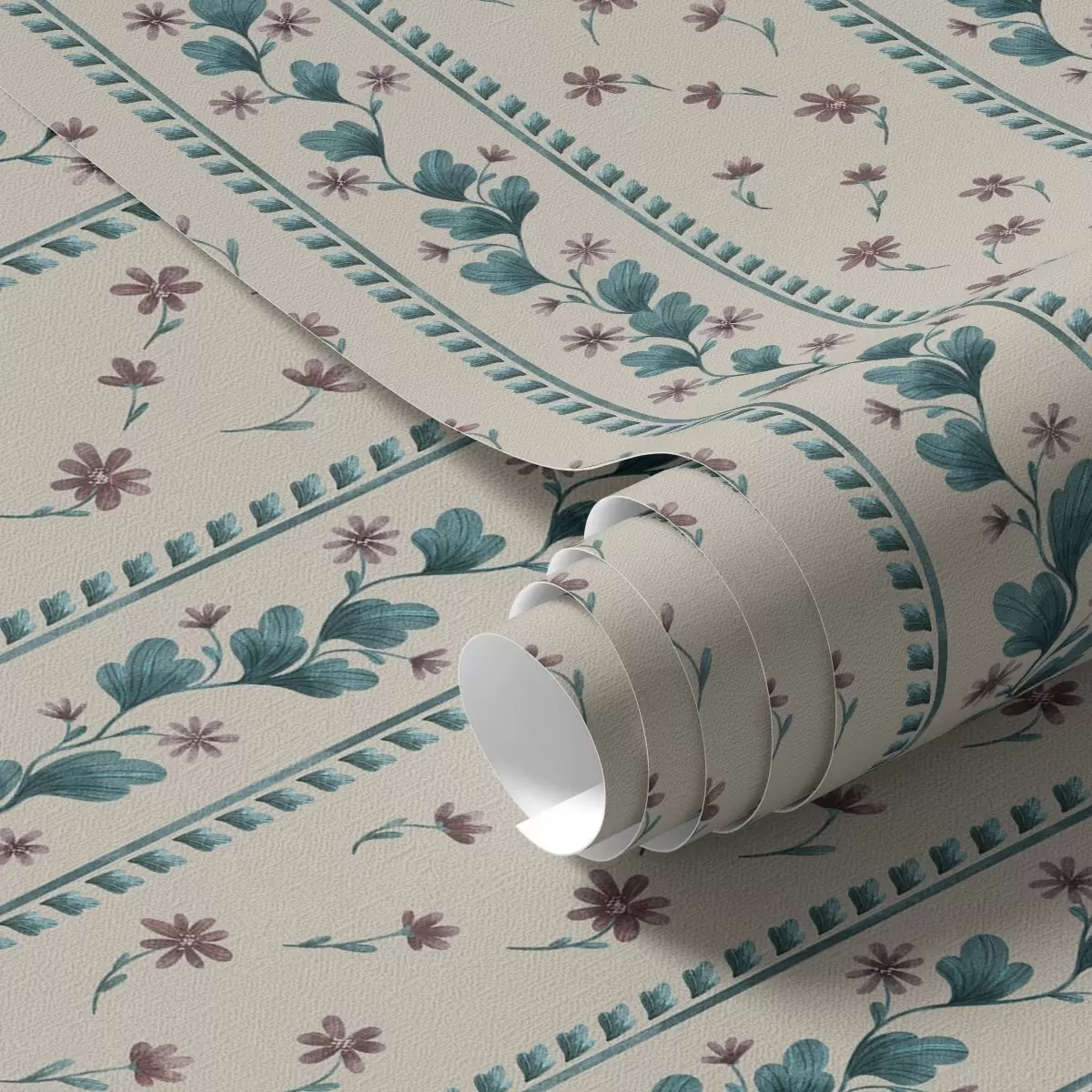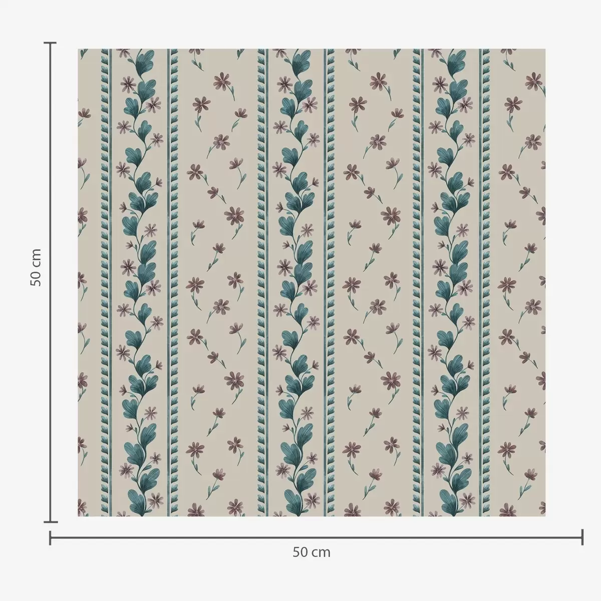 Papel de parede Listras florais verticais em tons de azul e castanho Nr. a00811v1
