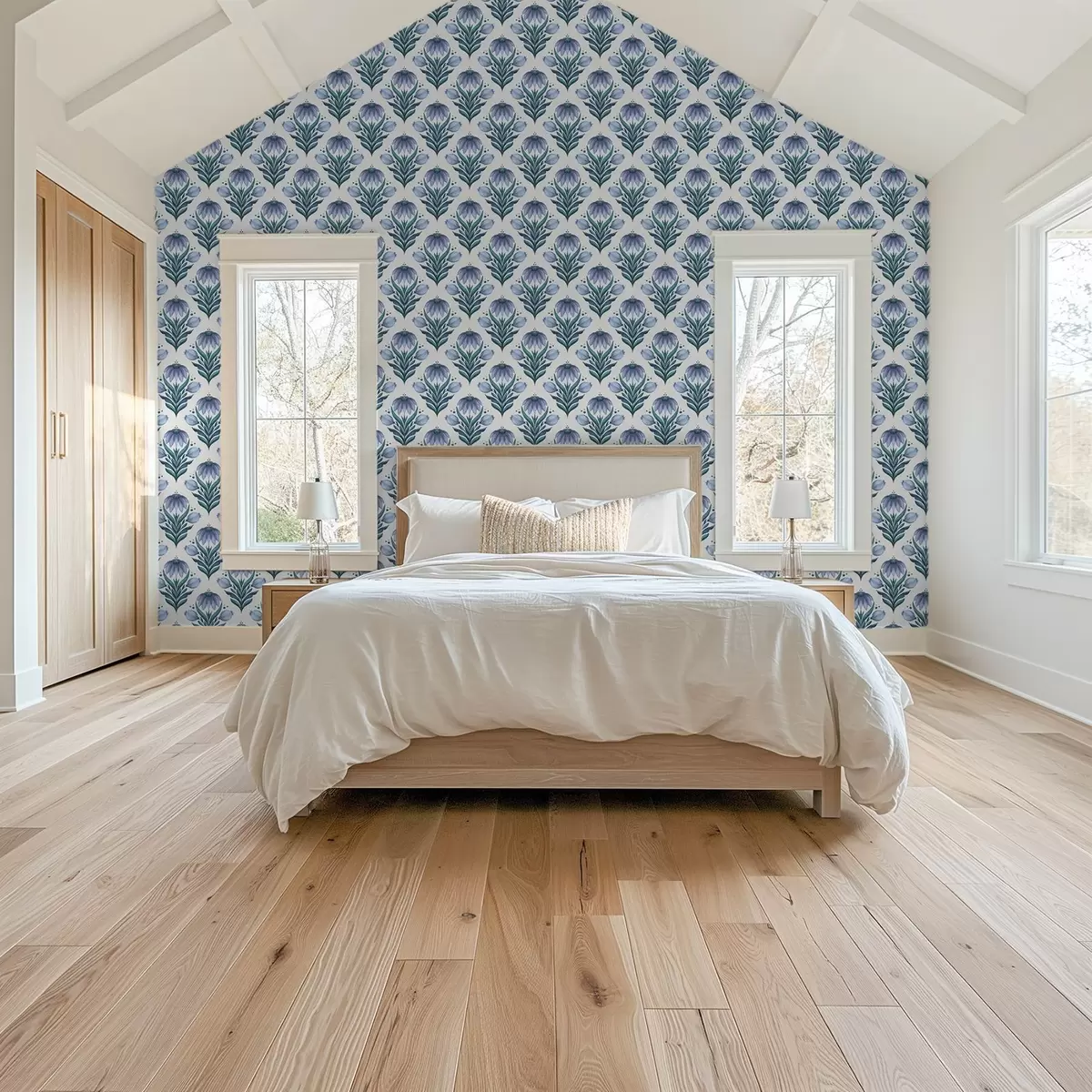 Papel de parede Ornamento floral simétrico em tons de azul e branco Nr. a00812v2