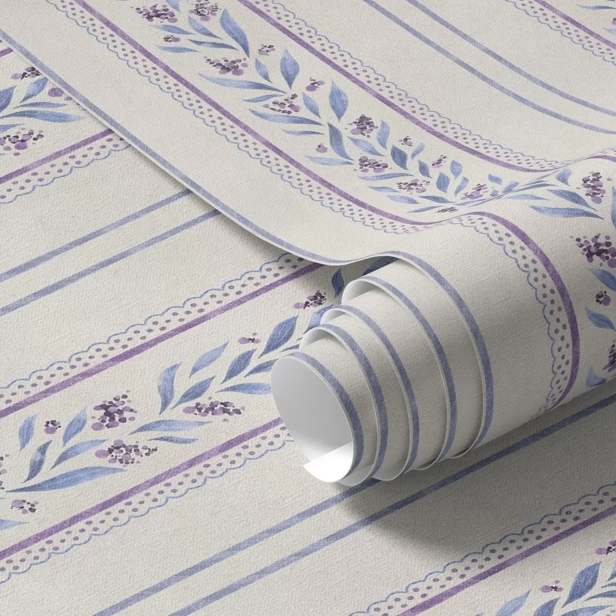 Papel de parede Listras verticais com guirlandas lavanda, fundo bege Nr. a00813v1