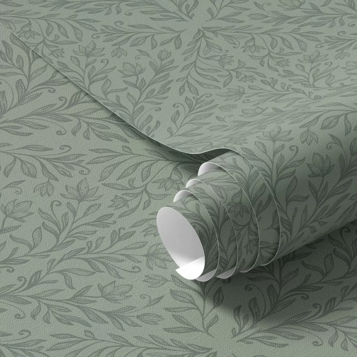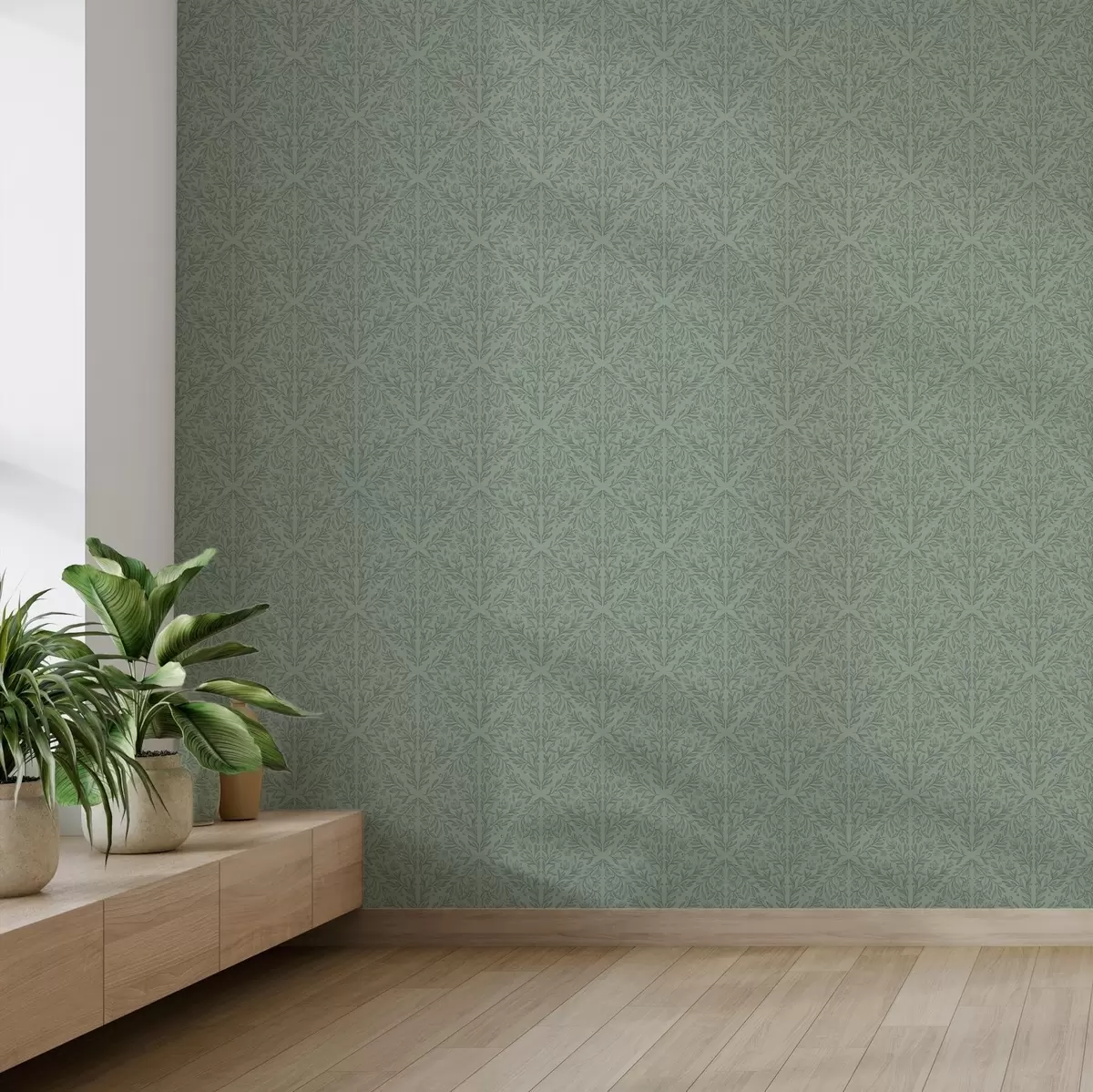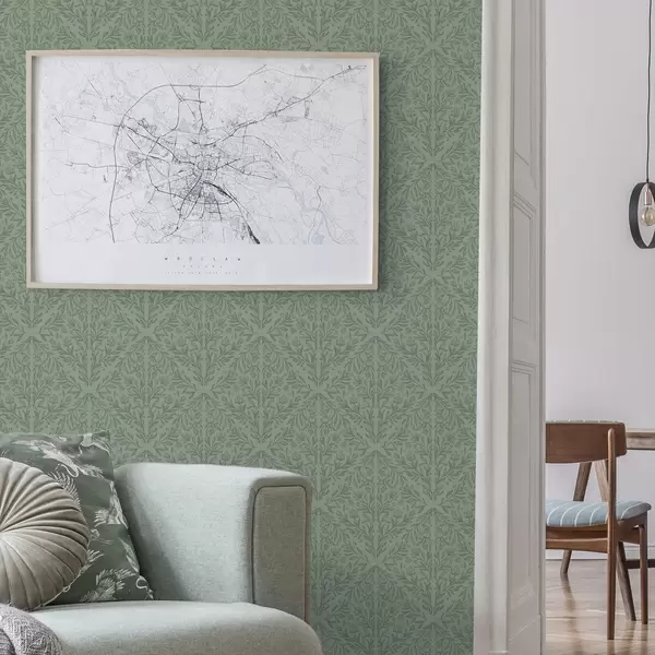 Papel de parede Damasco botânico fino em verde suave Nr. a00815v1