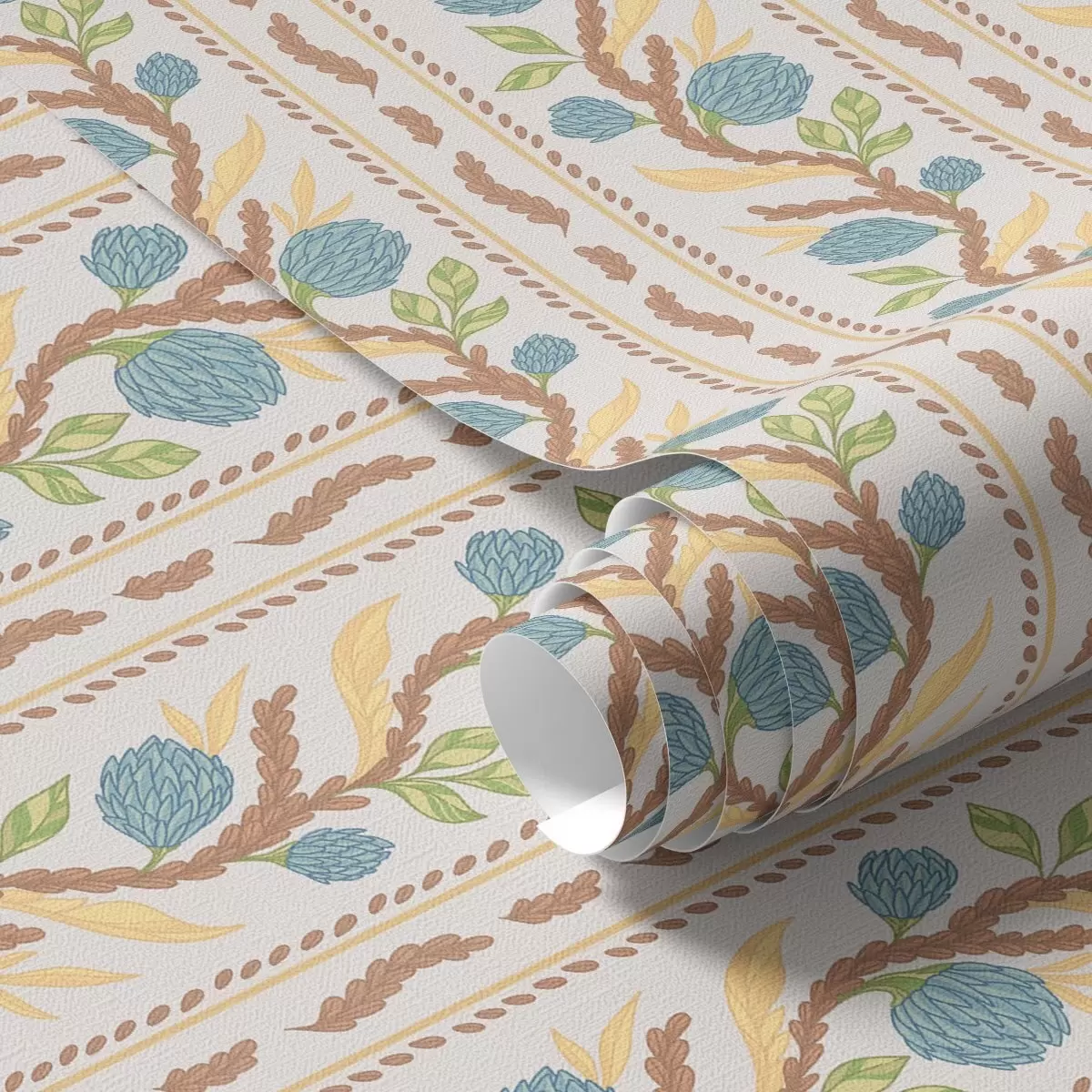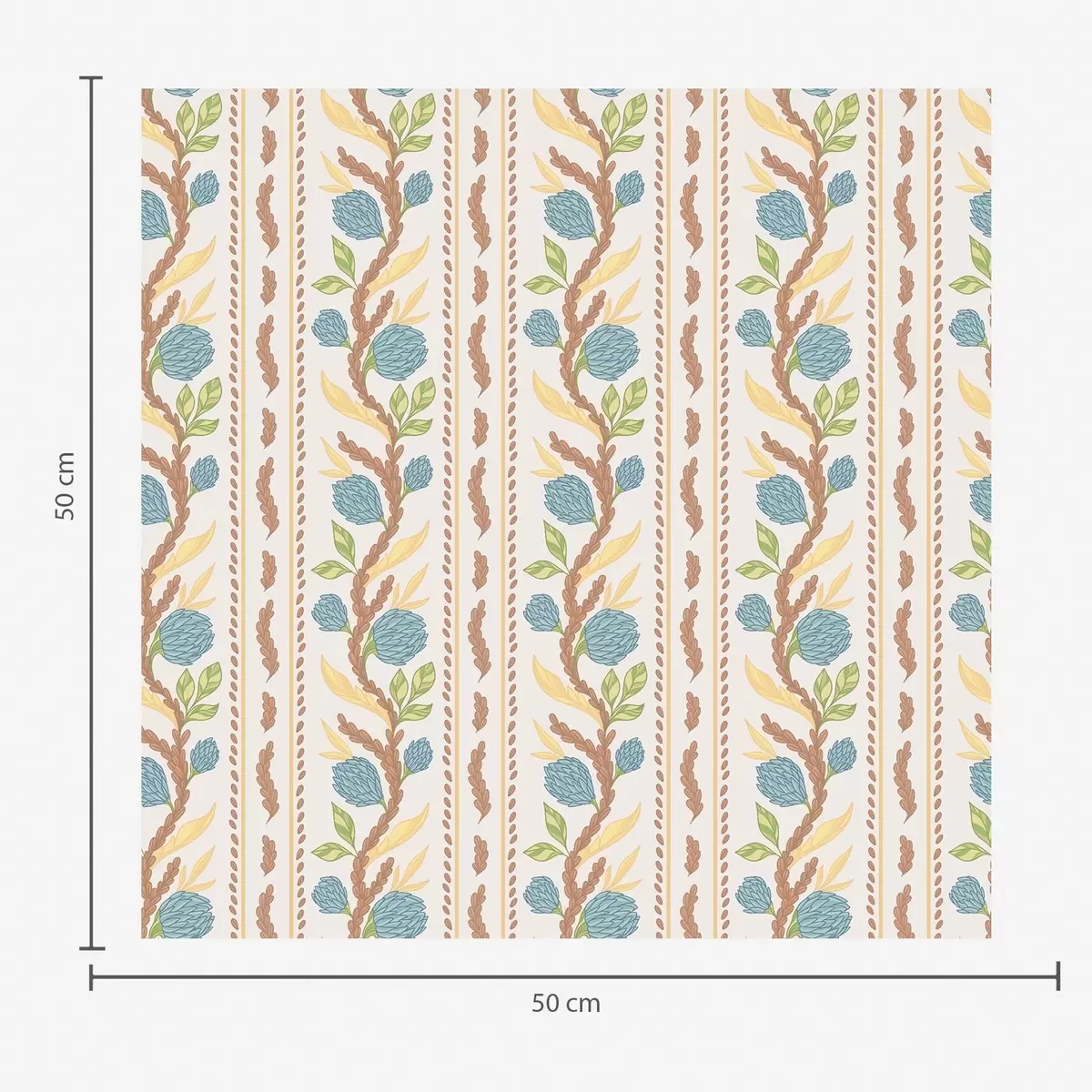 Papel de parede Listras verticais com flores azuis sobre um fundo quente Nr. a00816v3