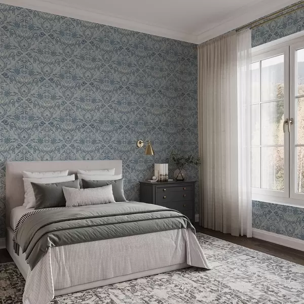 Papel de parede Damasco clássico, motivos azuis sobre fundo creme Nr. a00826v1