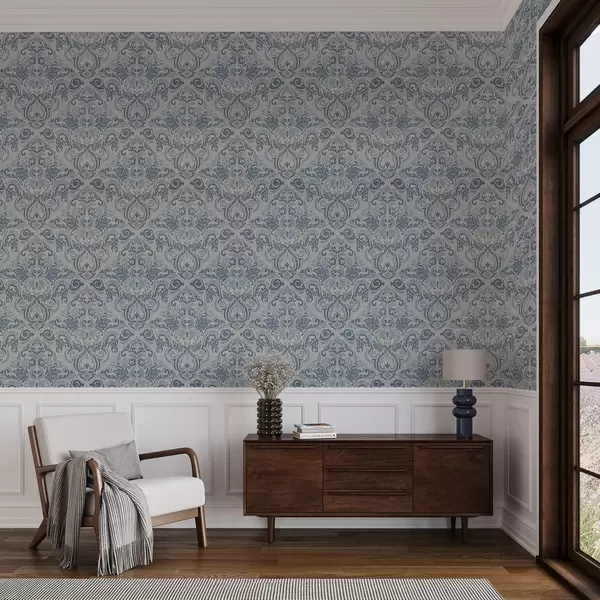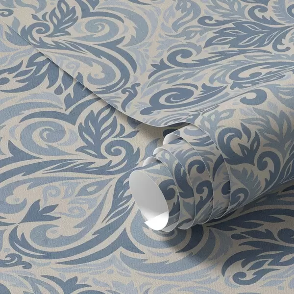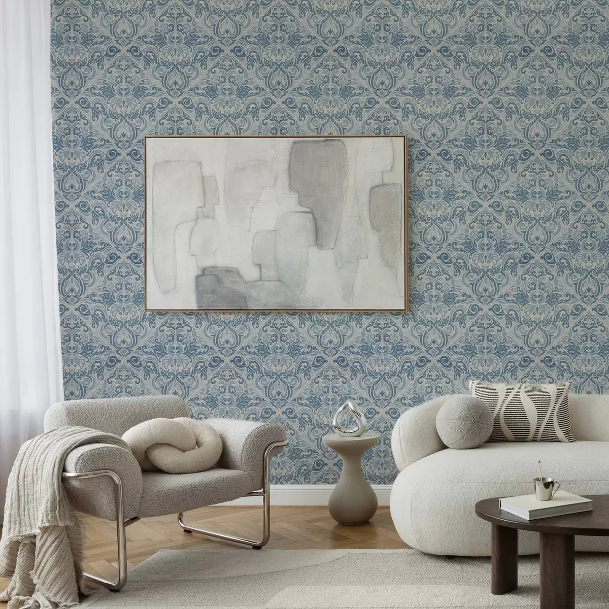 Papel de parede Damasco clássico, motivos azuis sobre fundo creme Nr. a00826v1