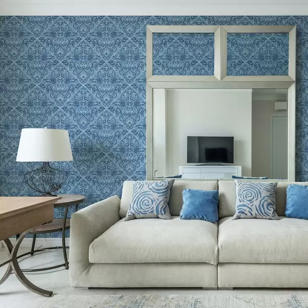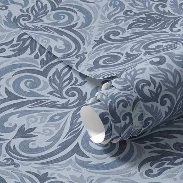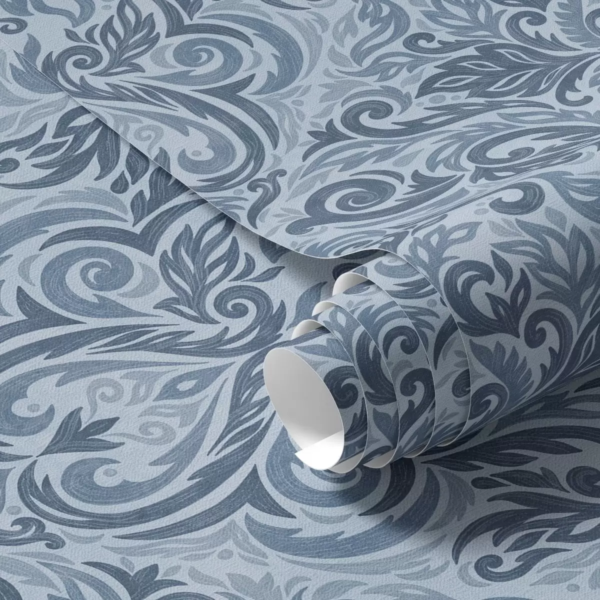 Papel de parede Damasco em tons azuis frios, contraste mais forte Nr. a00826v2