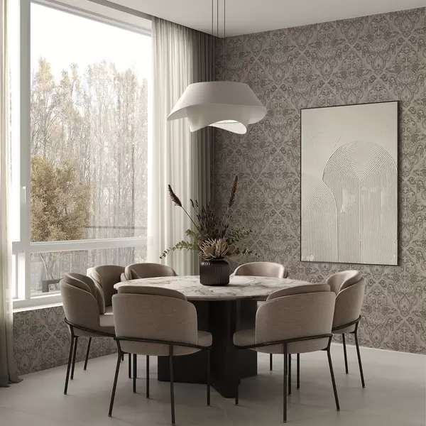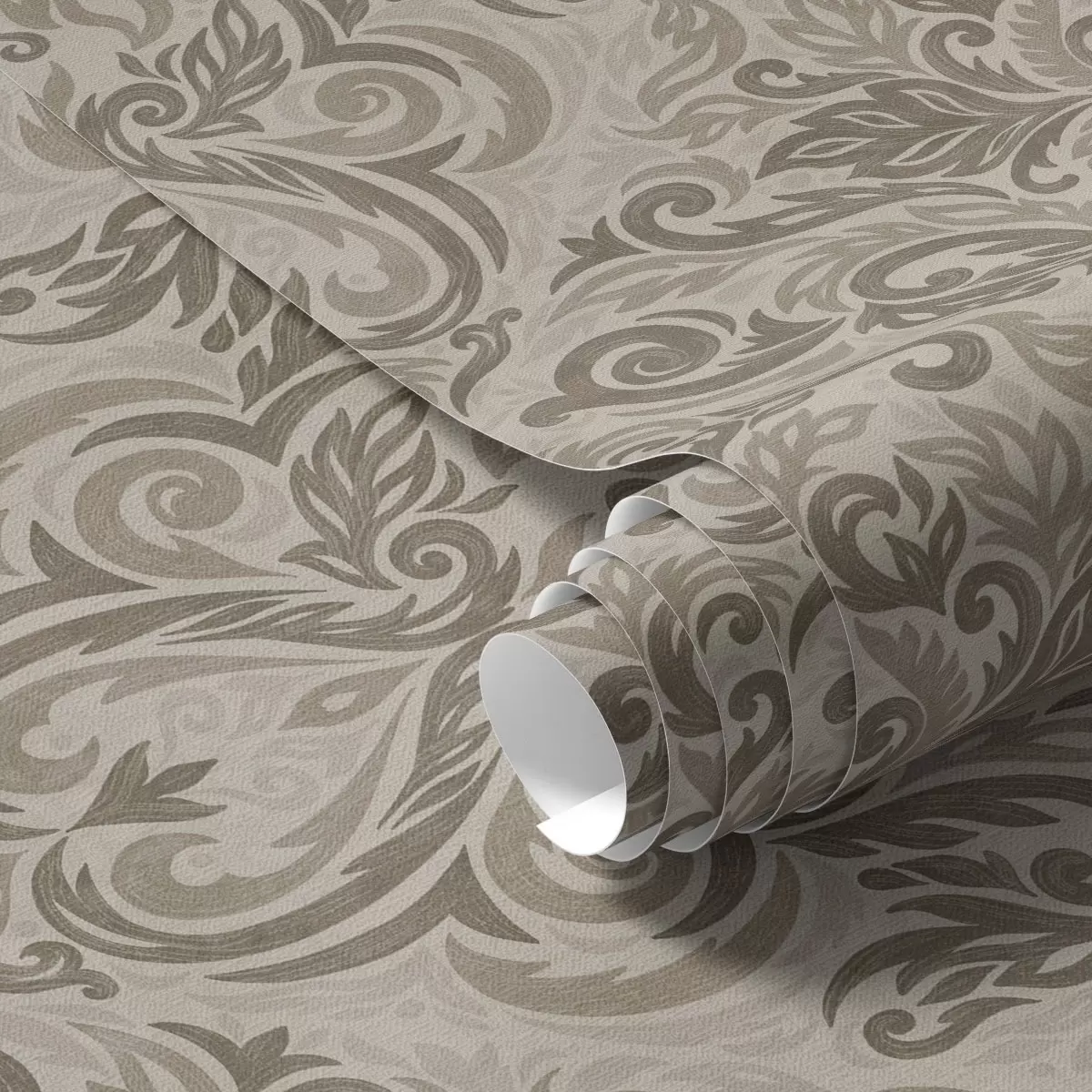 Papel de parede Damasco em tons quentes de cinza-castanho sobre fundo claro Nr. a00826v3