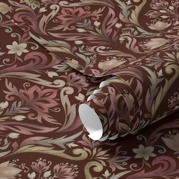 Papel de parede Ornamento em forma de tulipa, fundo bordô intenso Nr. a00827v2