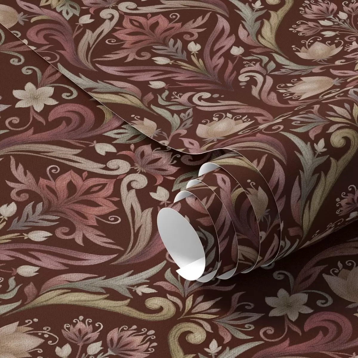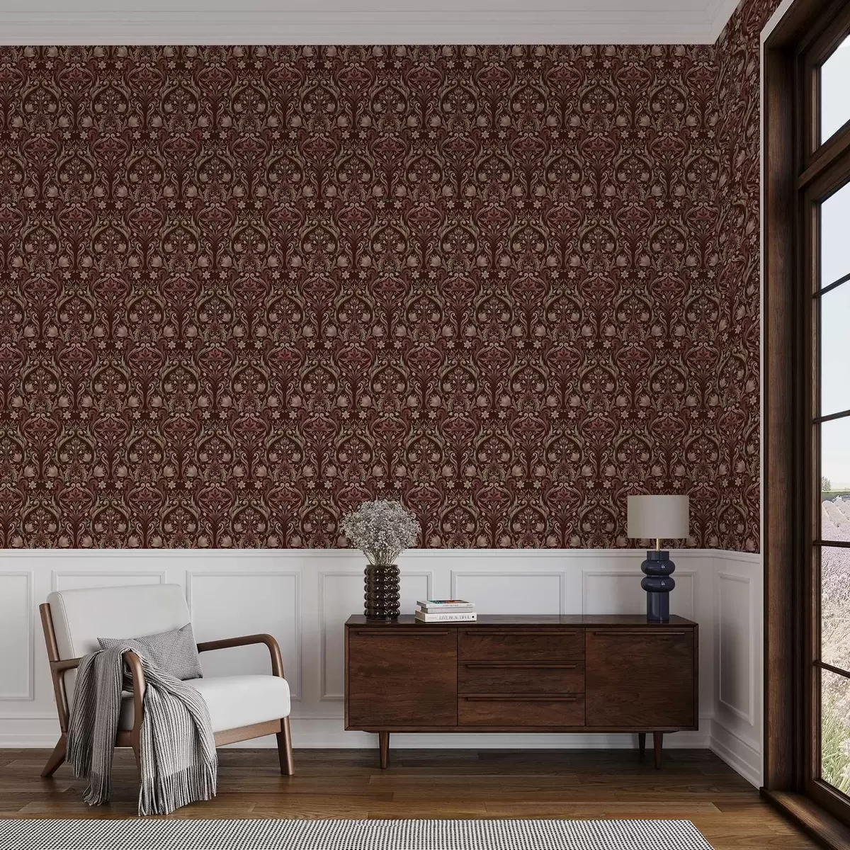 Papel de parede Ornamento em forma de tulipa, fundo bordô intenso Nr. a00827v2