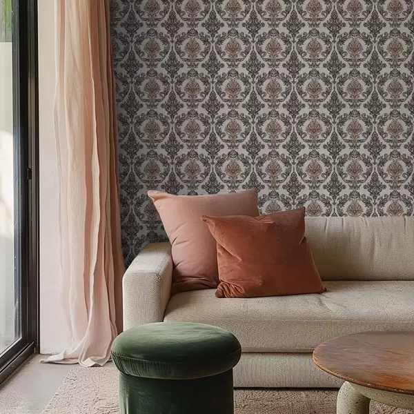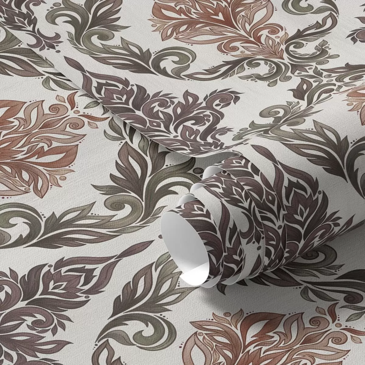 Papel de parede Damasco com detalhes em castanho-cobre sobre fundo claro Nr. a00828v4