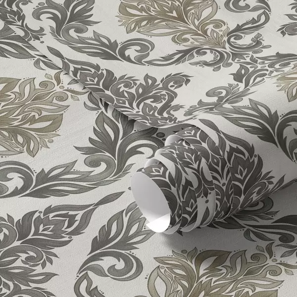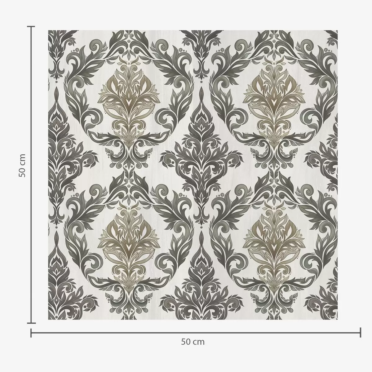 Papel de parede Damasco sobre fundo claro, detalhes em bronze-oliva Nr. a00828v6