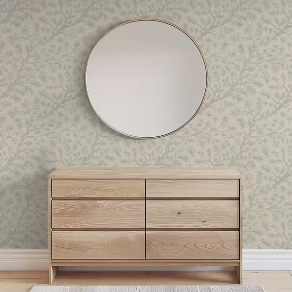 Papel de parede Galhos de pinheiro em tons de verde claro sobre fundo bege Nr. a00838v1