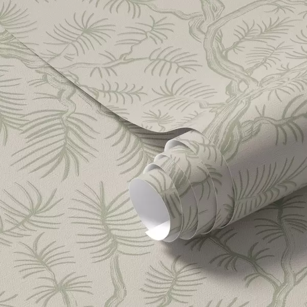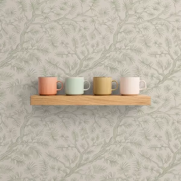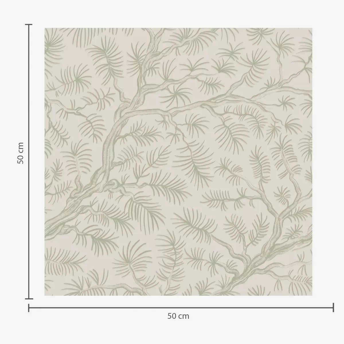 Papel de parede Galhos de pinheiro em tons de verde claro sobre fundo bege Nr. a00838v1