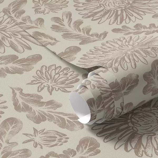 Papel de parede Crisântemos e folhas de carvalho em bege-castanho suave Nr. a00840