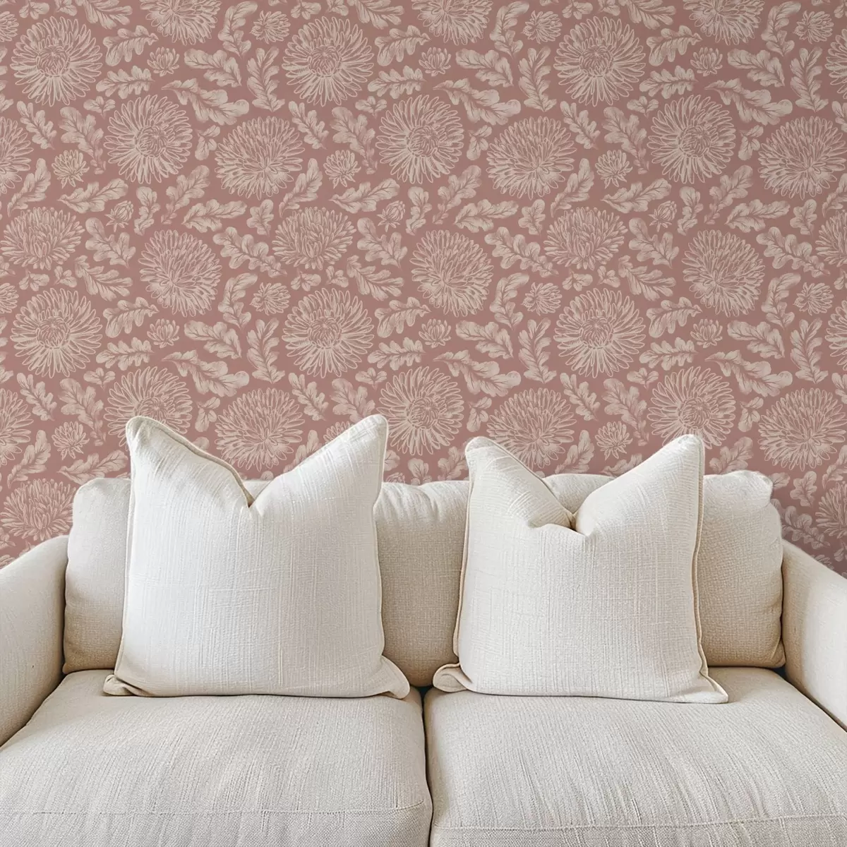 Papel de parede Crisântemos creme em rosa pálido Nr. a00840v2