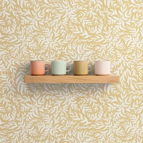 Papel de parede Padrão de folhas brancas sobre ocre quente, ritmo espiralado Nr. a00845