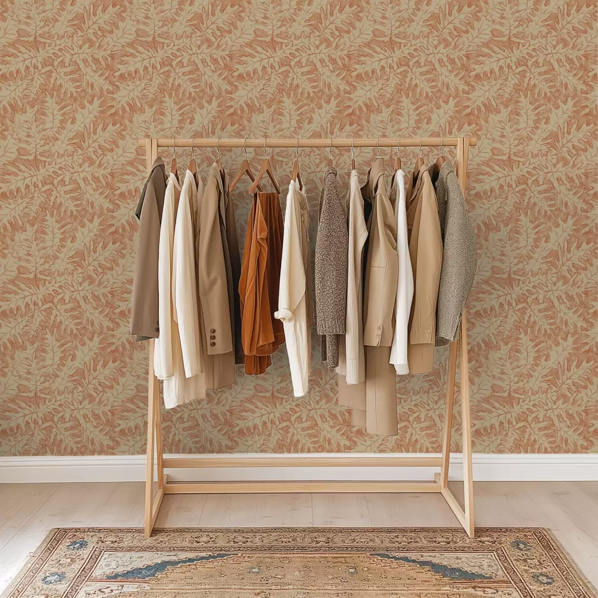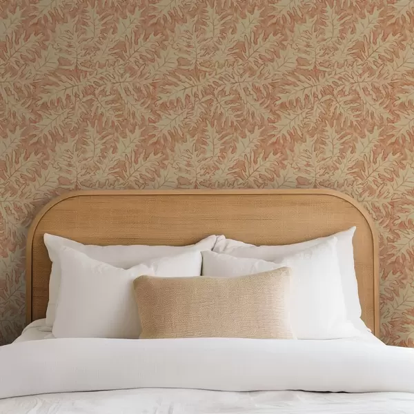 Papel de parede Folhas grandes de carvalho em terracota sobre fundo creme Nr. a00846