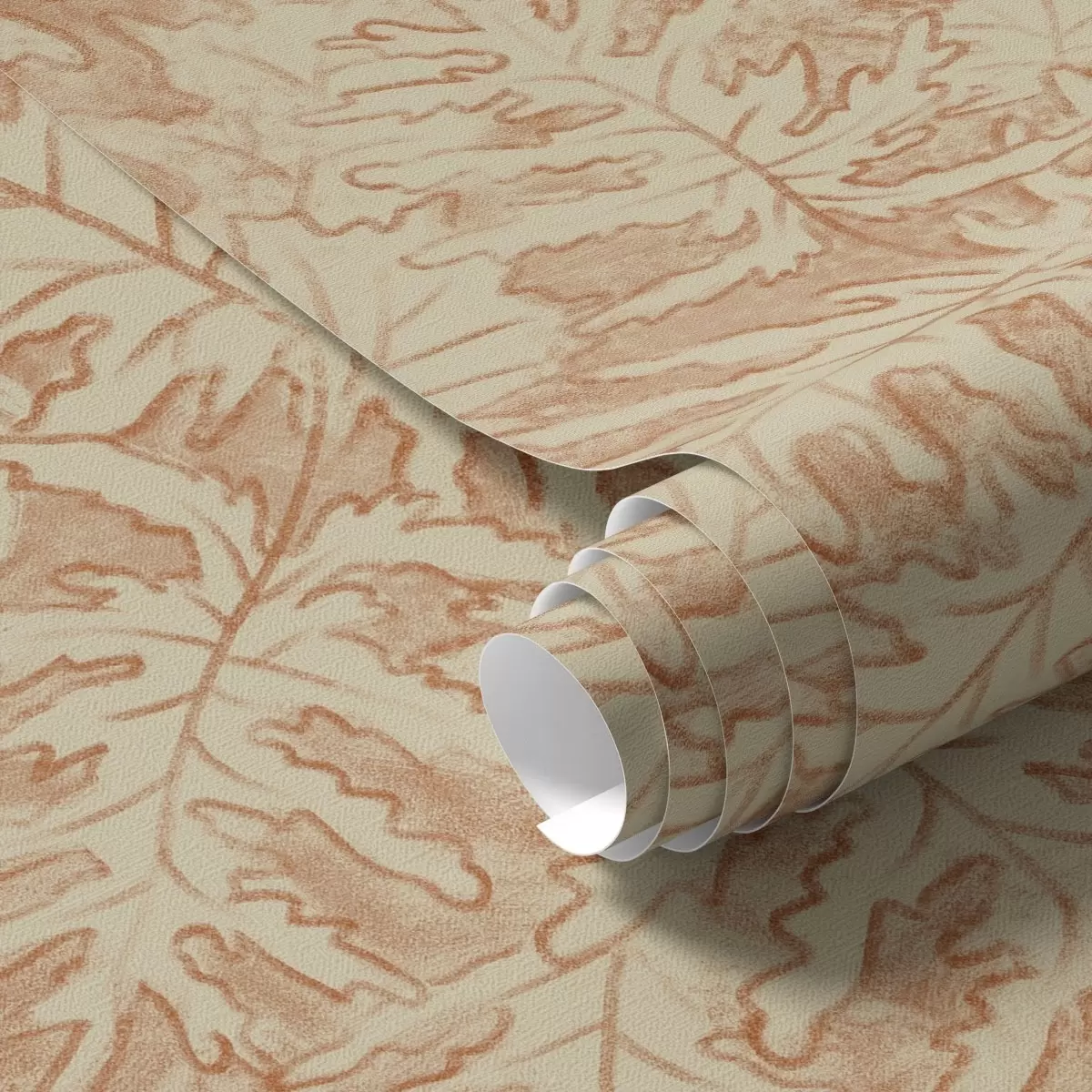 Papel de parede Folhas grandes de carvalho em terracota sobre fundo creme Nr. a00846