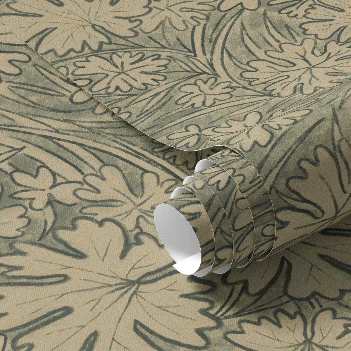 Papel de parede Folhas e ervas do campo em tons cinza-oliva Nr. a00847v1
