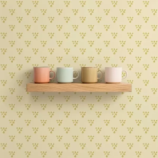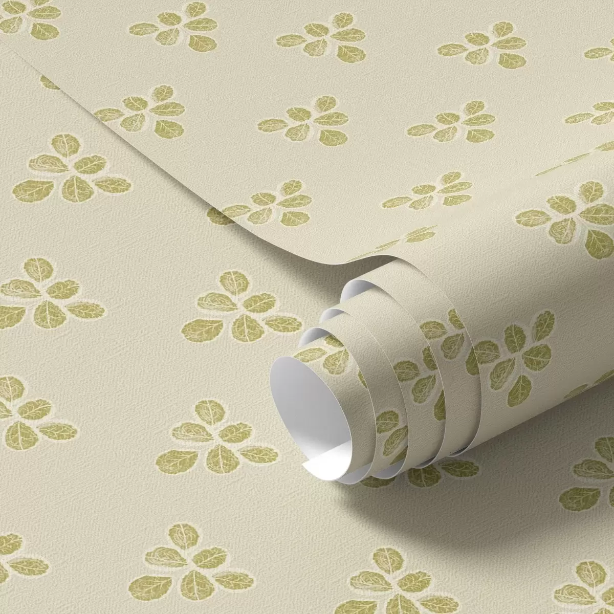 Papel de parede Pequena repetição: trios de folhas em bege creme Nr. a00848