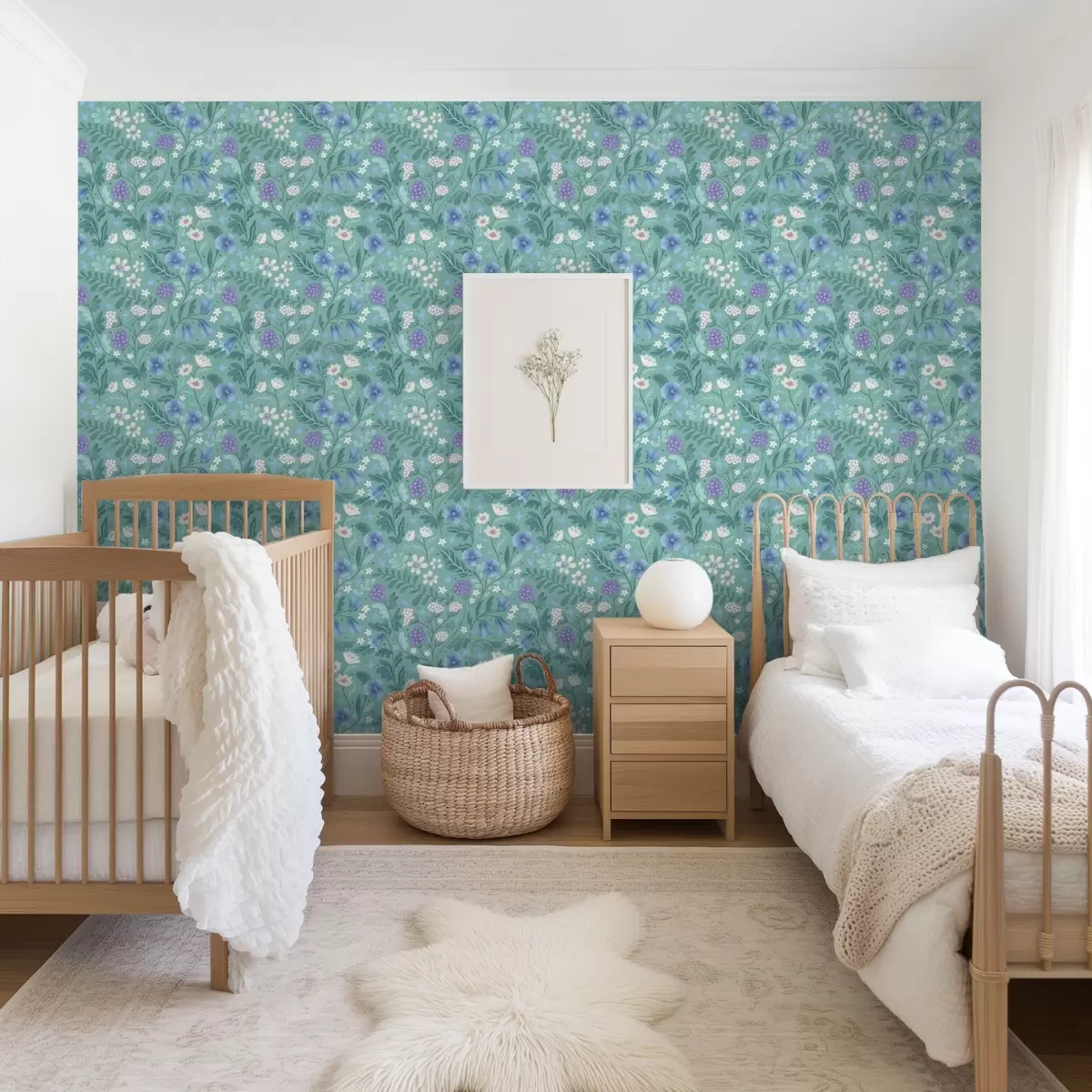 Papel de parede Flores silvestres e bagas sobre fundo suave em tons de menta Nr. a00849