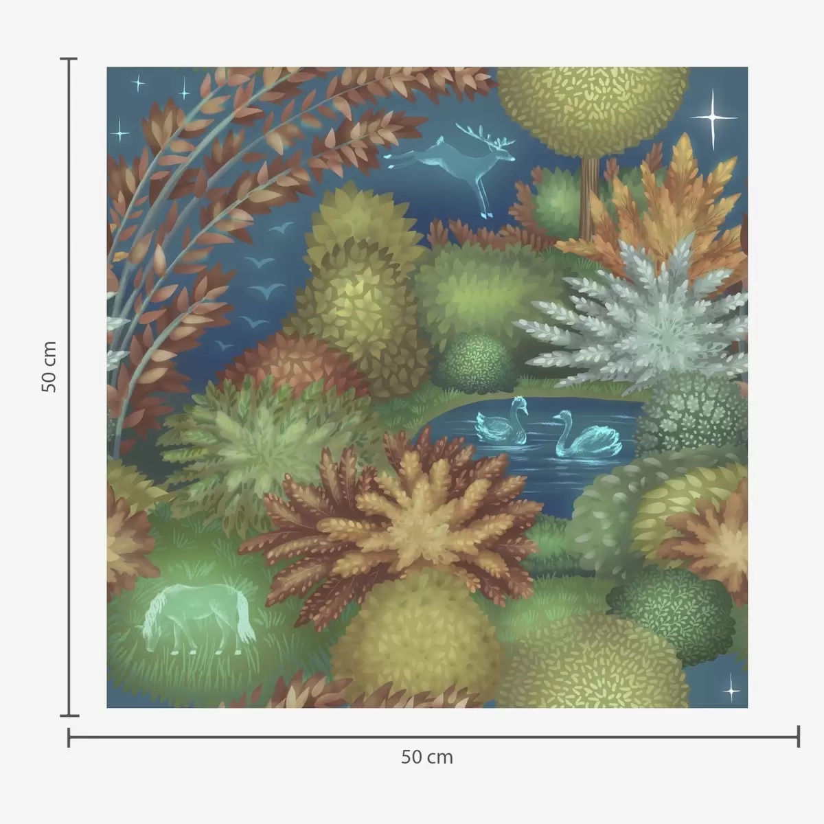 Papel de parede Jardim noturno de conto de fadas com um lago e animais brilhantes Nr. a00851