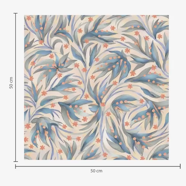 Papel de parede Folhagem azul abstrata com flores corais Nr. a00852
