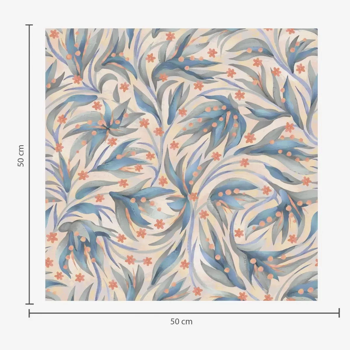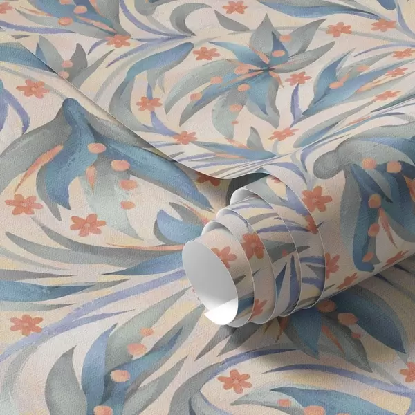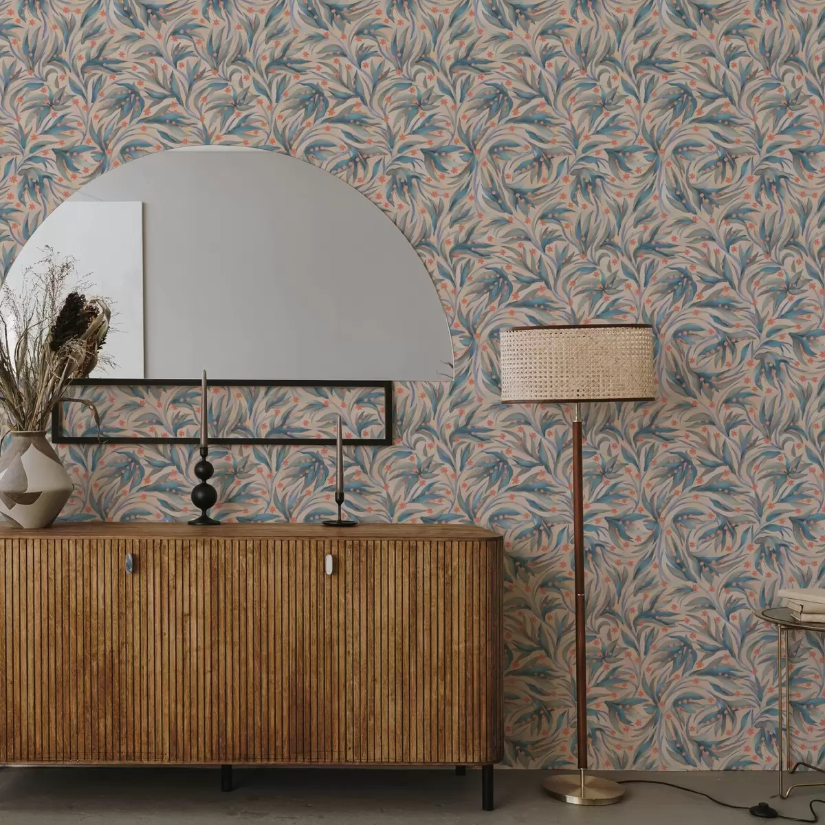 Papel de parede Folhagem azul abstrata com flores corais Nr. a00852