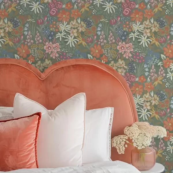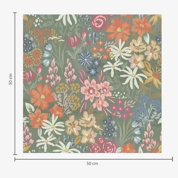 Papel de parede Flores campestres pintadas em verde salva Nr. a00864