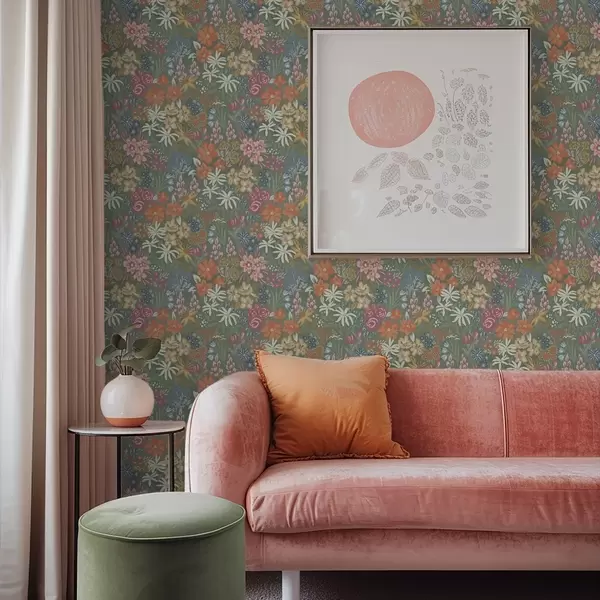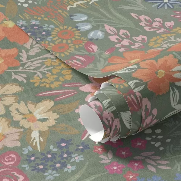 Papel de parede Flores campestres pintadas em verde salva Nr. a00864