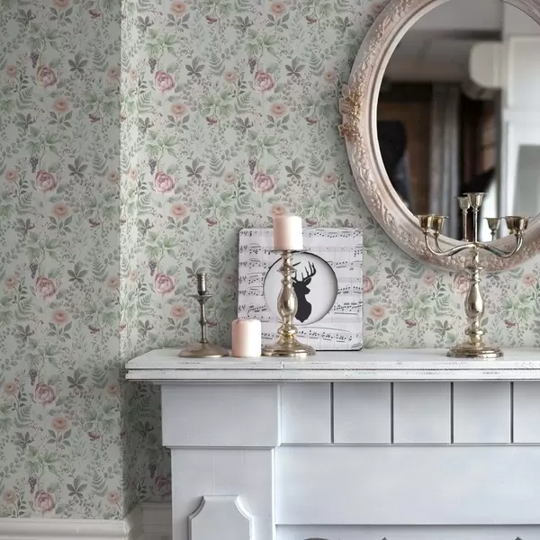 Papel de parede Jardim pastel com rosas, fetos e uvas Nr. a00867