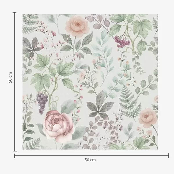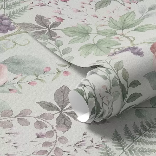Papel de parede Jardim pastel com rosas, fetos e uvas Nr. a00867