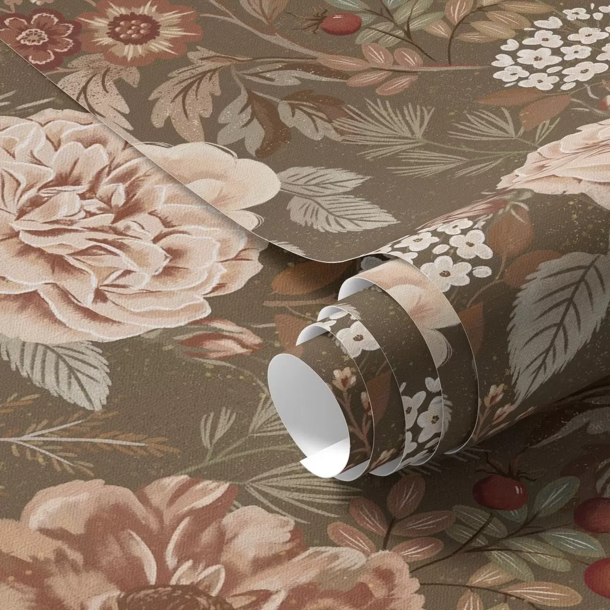Papel de parede Rosas e bagas quentes sobre um fundo castanho Nr. a00868