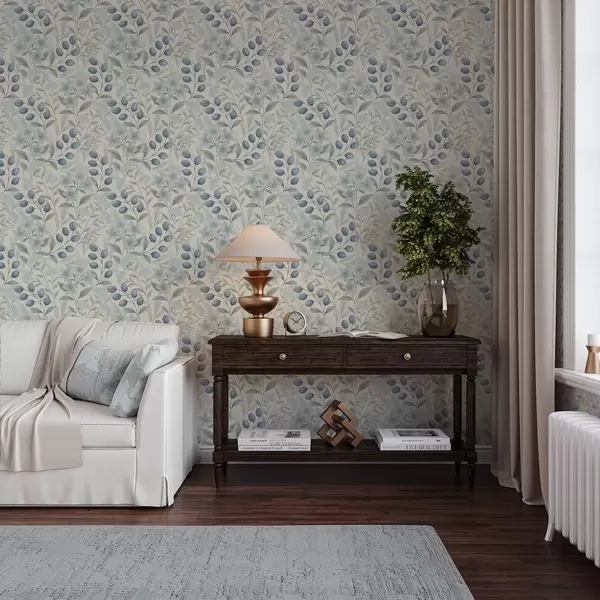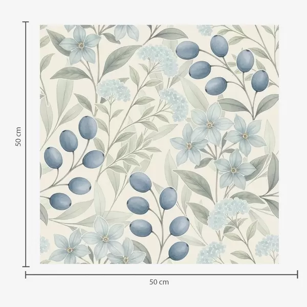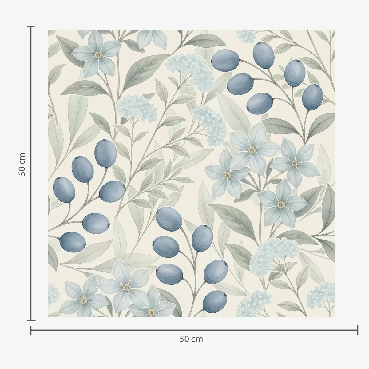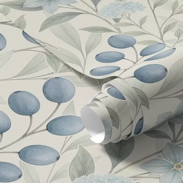Papel de parede Mirtilos azuis e flores claras sobre marfim Nr. a00872