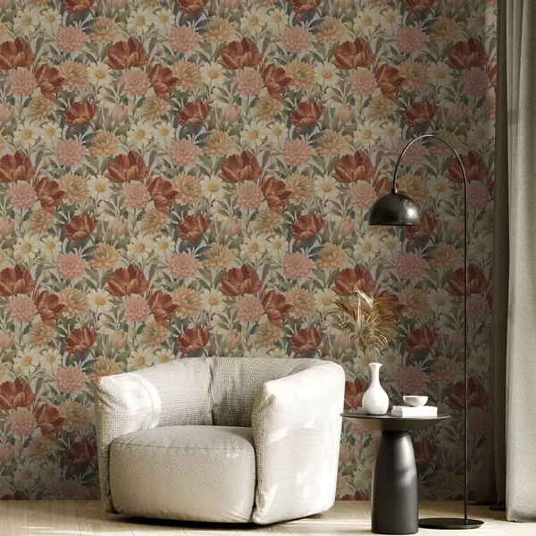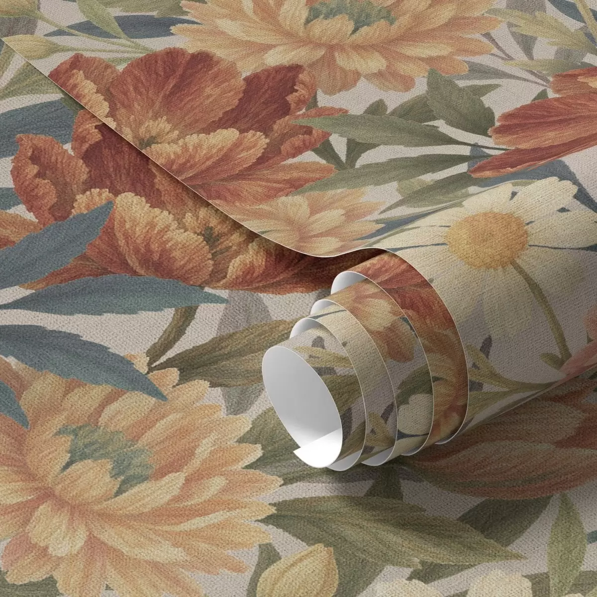 Papel de parede Jardim vintage floresce em tons quentes de terracota e pêssego Nr. a00874