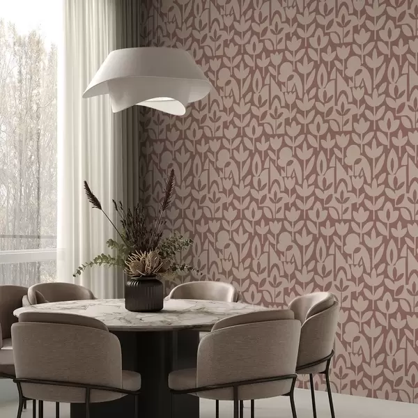 Papel de parede Silhuetas florais geométricas em terracota e creme Nr. a00875v2
