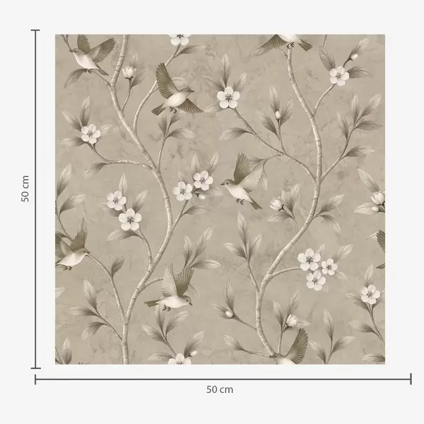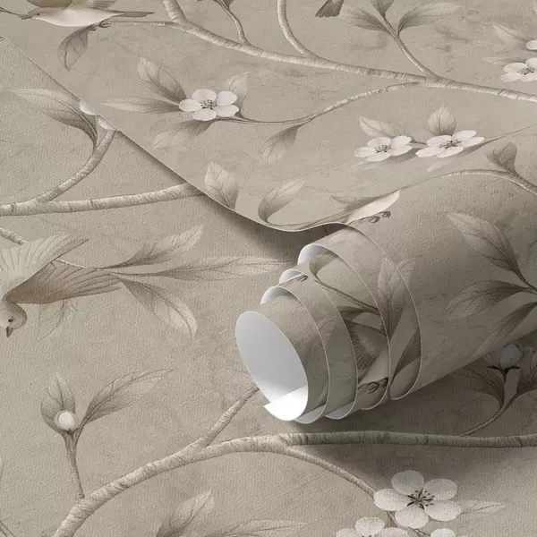 Papel de parede Pássaros e ramos floridos em tons sépia quentes Nr. a00882