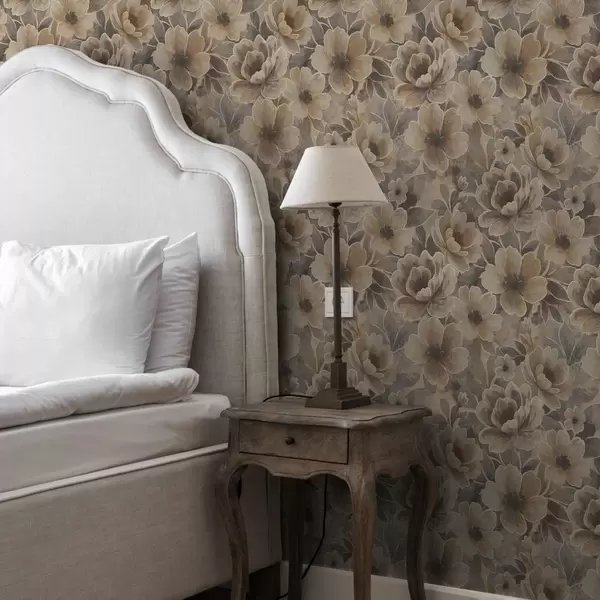 Papel de parede Flores bege pintadas sobre um fundo abstrato esfumado a00884