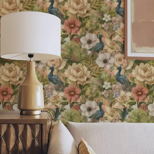Papel de parede Jardim pitoresco com pavões e flores grandes Nr. a00885