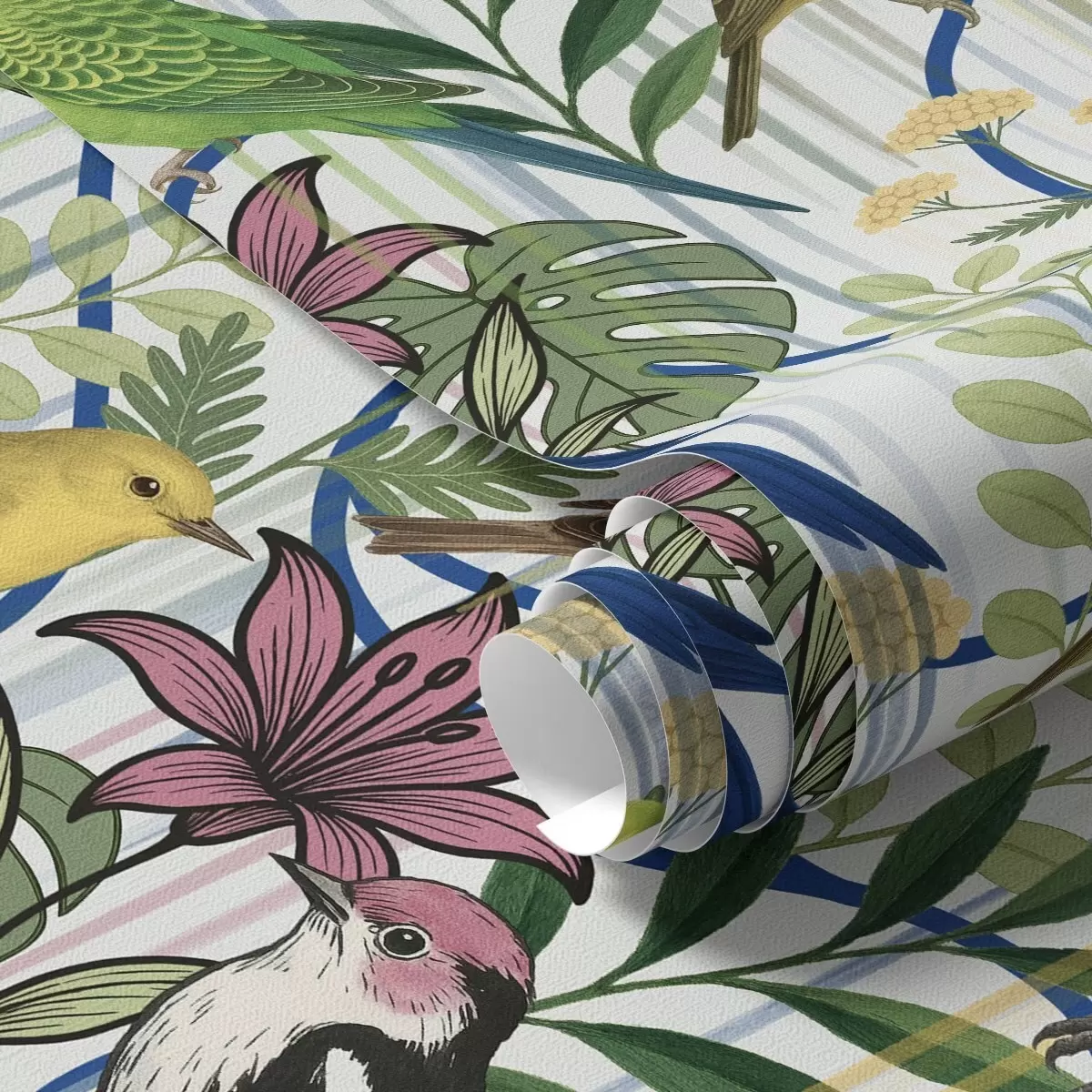 Papel de parede Pássaros exóticos brilhantes entre a vegetação tropical Nr. a00887