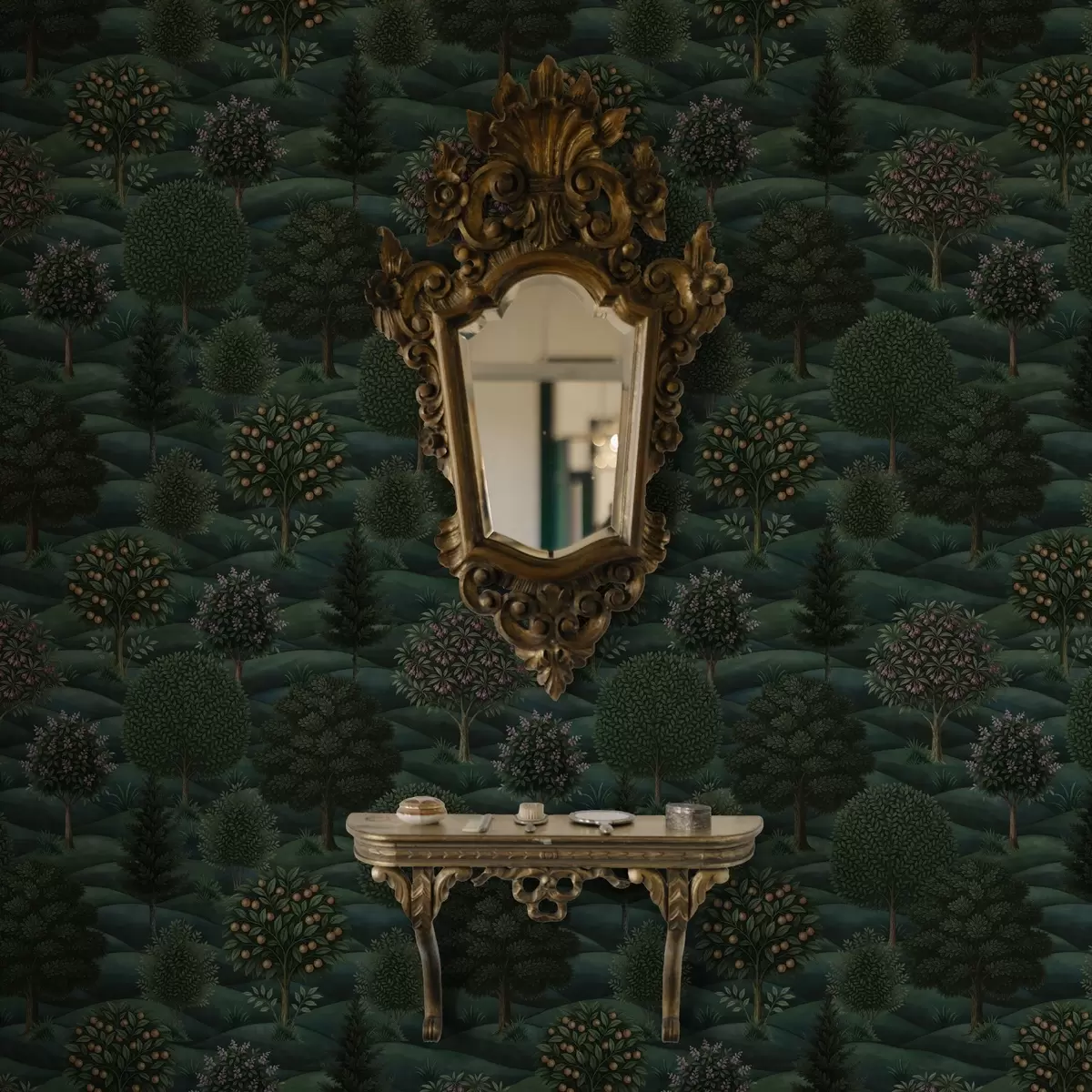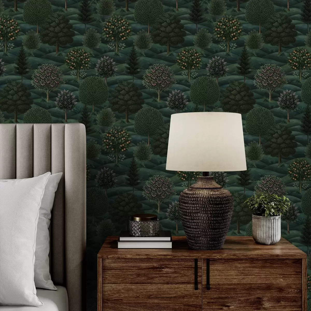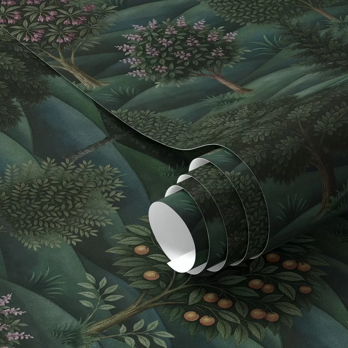 Papel de parede Paisagem verdejante e ondulada com árvores dispostas em padrões Nr. a00892