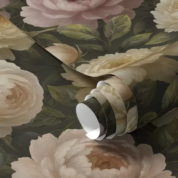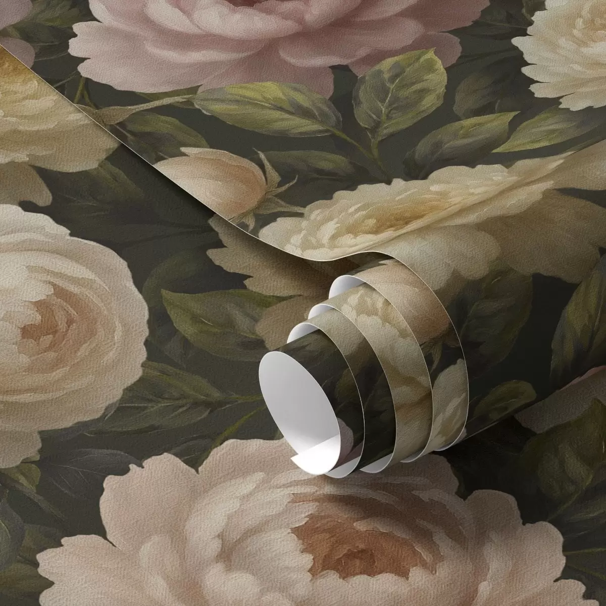 Papel de parede Peônias românticas sobre um fundo botânico escuro Nr. a00893