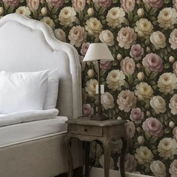 Papel de parede Peônias românticas sobre um fundo botânico escuro Nr. a00893