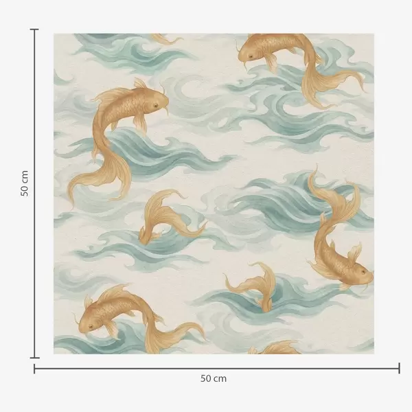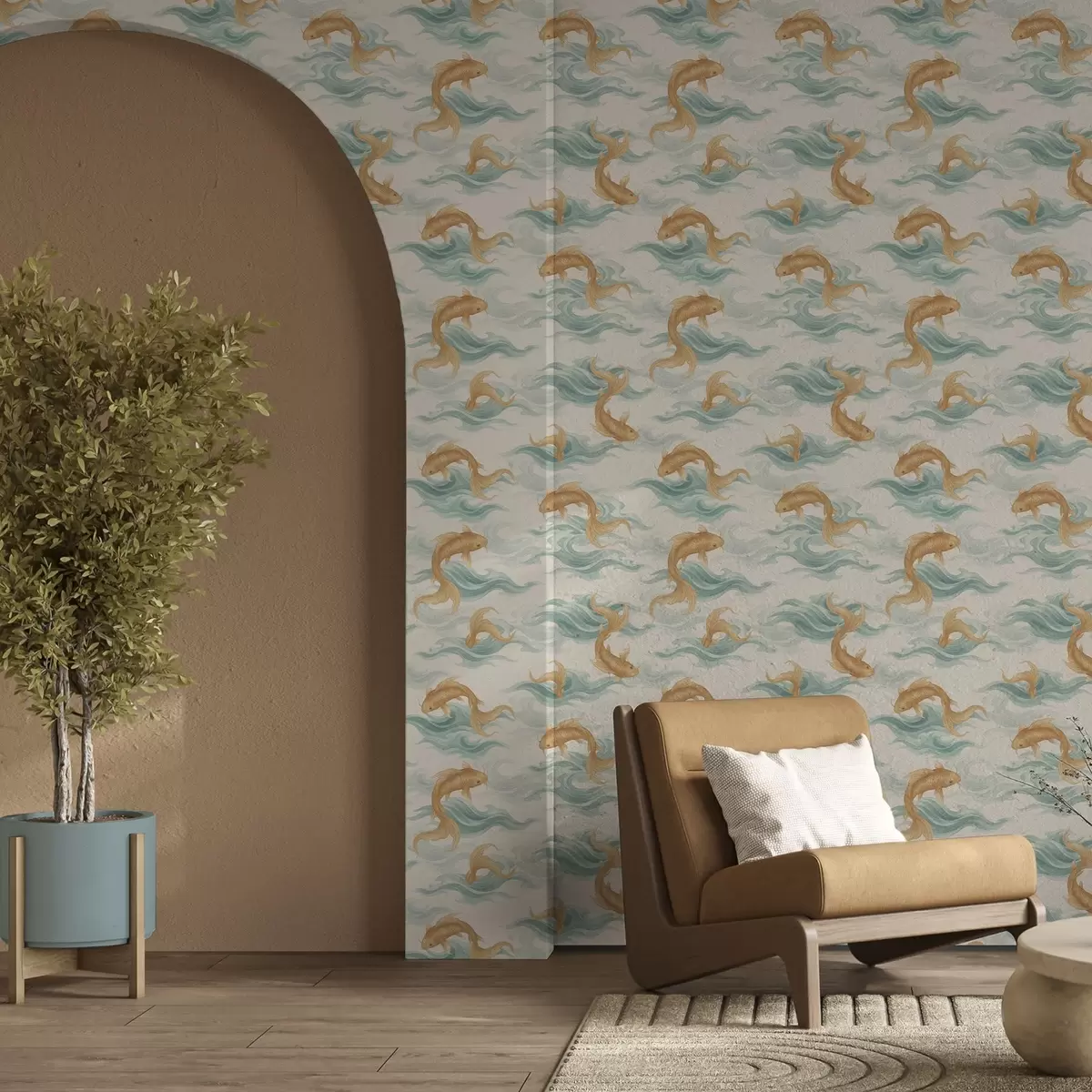 Papel de parede Peixe koi âmbar nadando entre ondas suaves de cor turquesa Nr. a00894