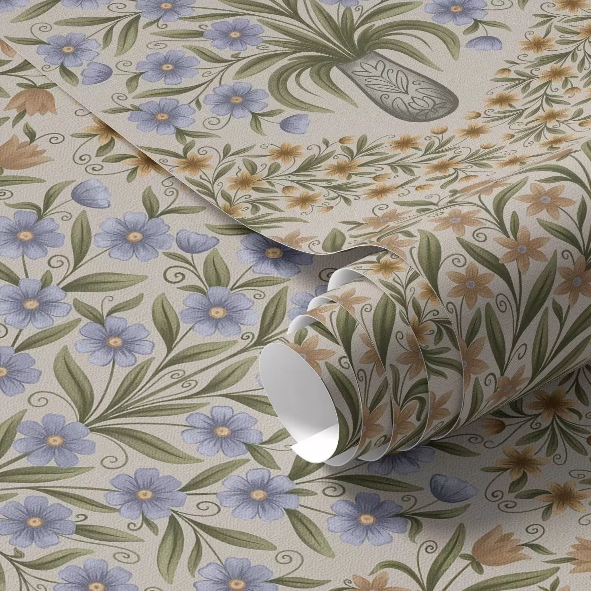 Papel de parede Vasos alternados e flores azuis em tom salva sobre rosa claro Nr. a00901