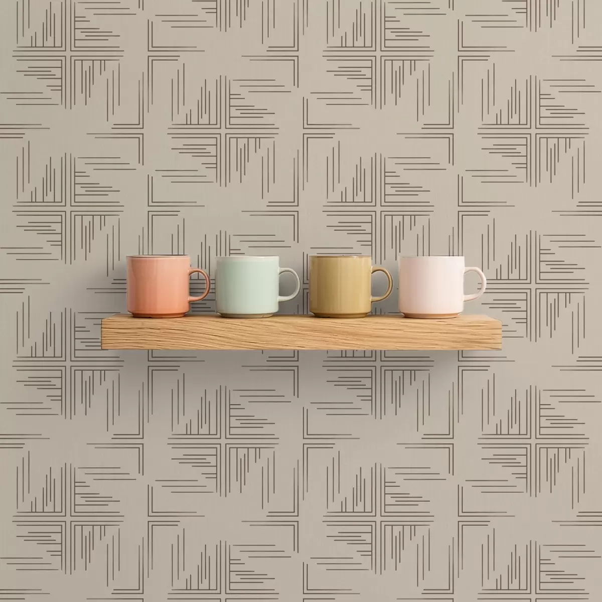 Papel de parede Blocos de canto em cacau com detalhes em linha dispersa, bege Nr. a00912